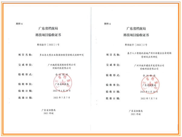 近日,集团总部《多业态大型企业集团档案管控模式创新研究》项目和米乐M6官网地产《基于人工智能的房地产项目档案全生命周期管理及应用研究》项目通过省档案科技项目验收,两个项目获得专家组充分肯定,成为省档案局科技项目管理办法修订后首批通过科技验收的项目。