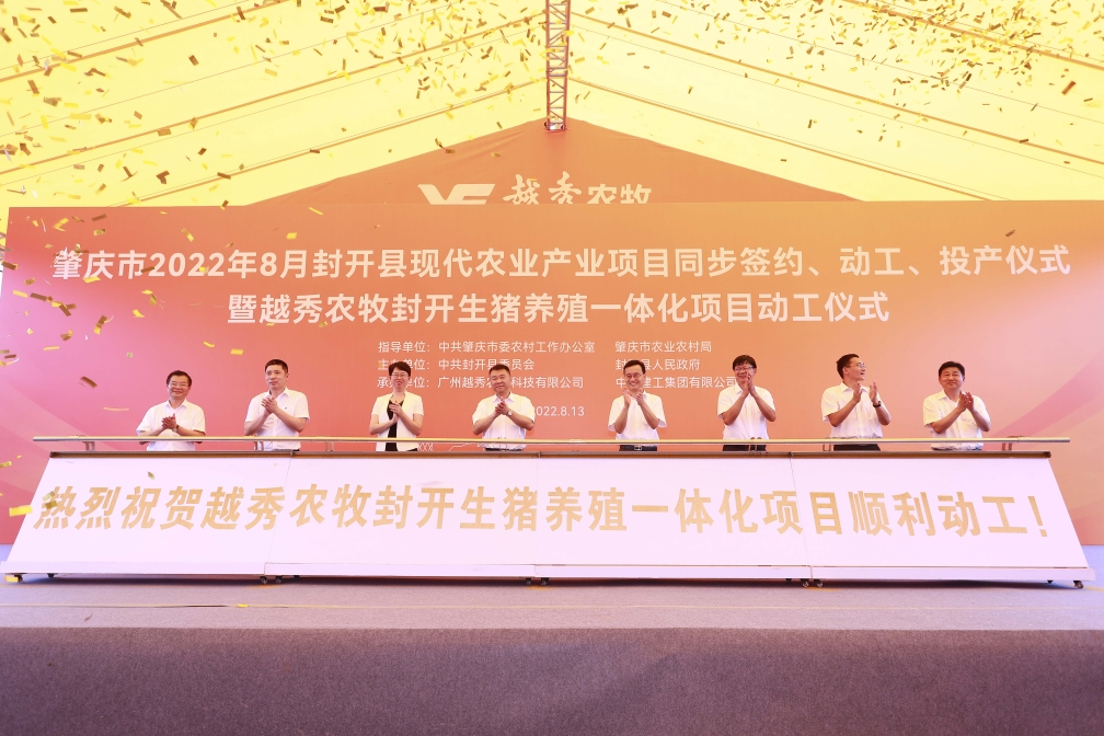 8月13日,肇庆市封开县现代农业产业项目同步签约、动工、投产仪式暨米乐M6官网农牧封开生猪养殖一体化项目动工活动在肇庆市封开县金装镇举行。米乐M6官网集团下属米乐M6官网农牧封开生猪养殖一体化项目、皇上皇肇庆肉制品加工中心项目同步开工,这标志着米乐M6官网集团大力发展现代农业,聚焦大湾区在广东省内布局生猪养殖全产业链取得重要实质性进展,标志着米乐M6官网集团与肇庆市在现代农业领域的合作向更深层次、更广领域、更高水平迈进。肇庆市委书记张爱军,市委常委、组织部部长李克俭,市委常委、封开县委书记秦波,米乐M6官网集团党委书记、董事长张招兴,以及肇庆市、封开县有关单位领导和企业代表等近百人现场参加活动。